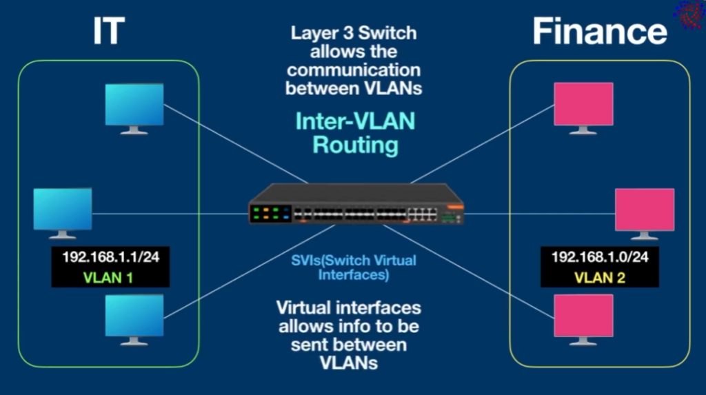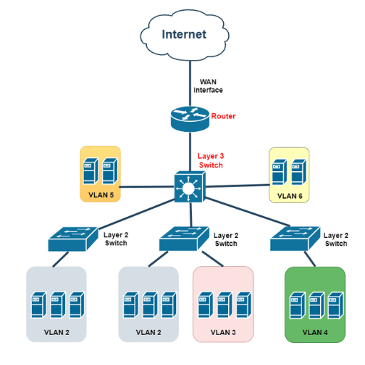 - Inter-VLAN Routing: Layer-3 switches can also forward traffic between VLANs, but this is often needed only in larger networks where segmentation has to be performed.
