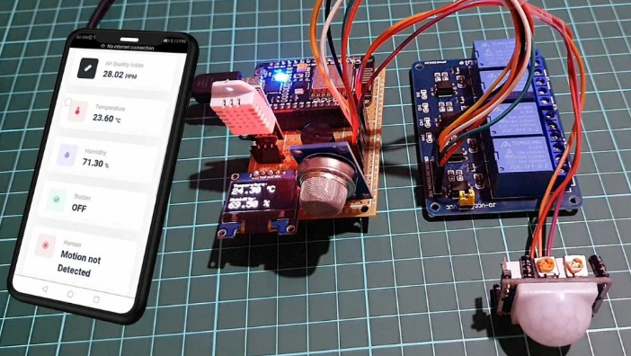 We will use the sensors like DHT22 Temperature & Humidity Sensor, MQ-135 Gas Sensor, Passive Infrared (PIR) sensor to monitor the Indoor Air Quality Parameters. Similarly, a simple 5V buzzer is used for the alarming system. For automation, I connected an Exhaust Fan to a relay 4, which activates automatically when the gas level exceeds the defined threshold value.