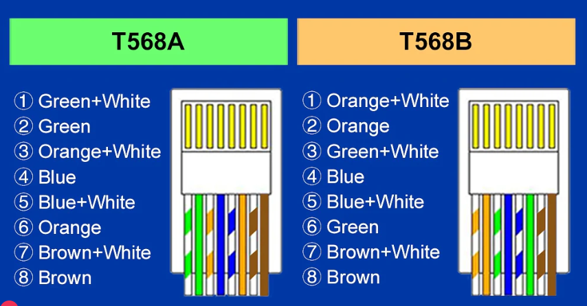 | Color Standard | T568A–T568A or T568B–T568B | One end T568A, other end T568B |