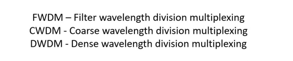 1. FWDM (Fiber Wavelength Division Multiplexing):