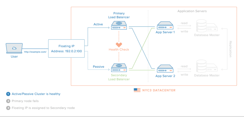 In this example, you have multiple load balancers (one active and one or more passive) behind a static IP address that can be remapped from one server to another. When a user accesses your website, the request goes through the external IP address to the active load balancer. If that load balancer fails, your failover mechanism will detect it and automatically reassign the IP address to one of the passive servers. There are a number of different ways to implement an active/passive HA setup.