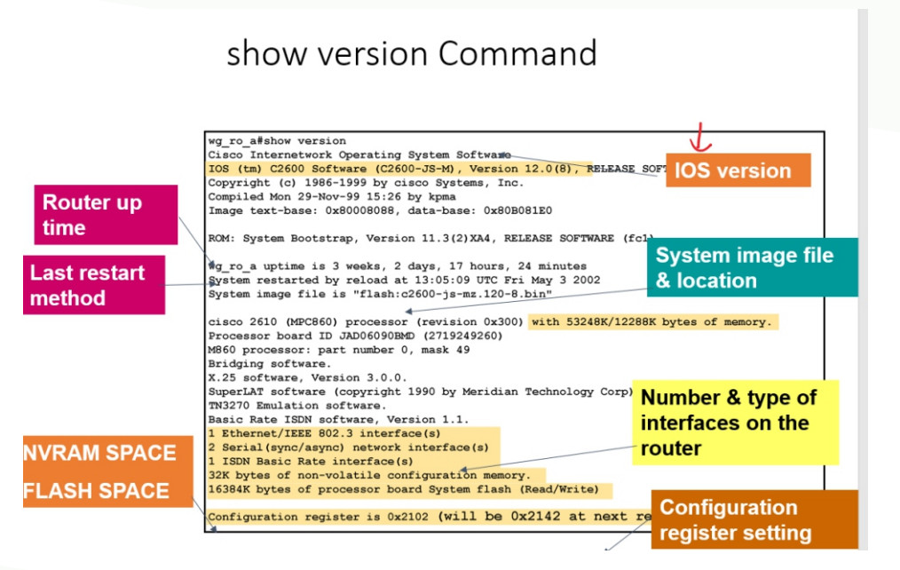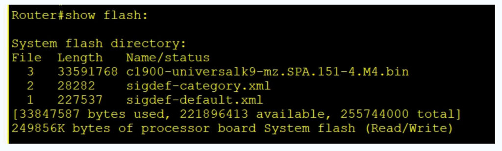 Show flash : To check the IOS File in flash memory.