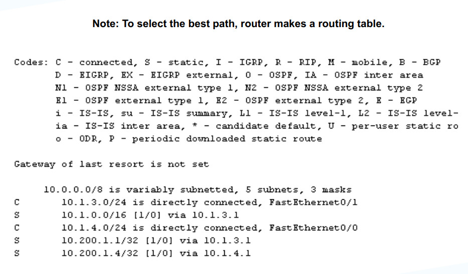 not shown here for that packet. Router’s routing decision is made by this routing table.