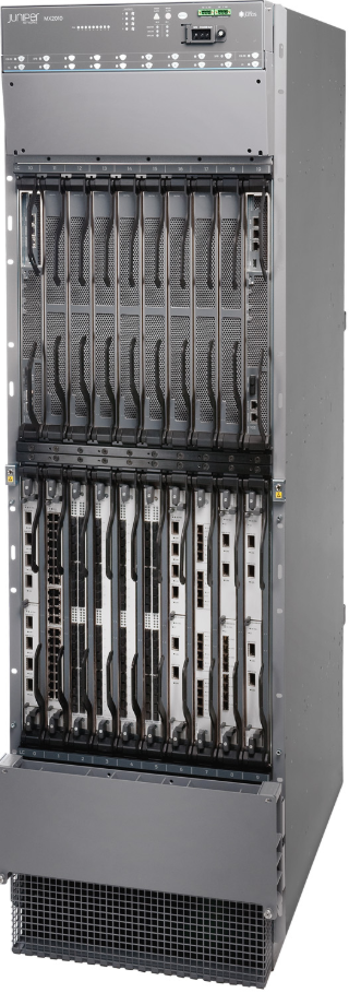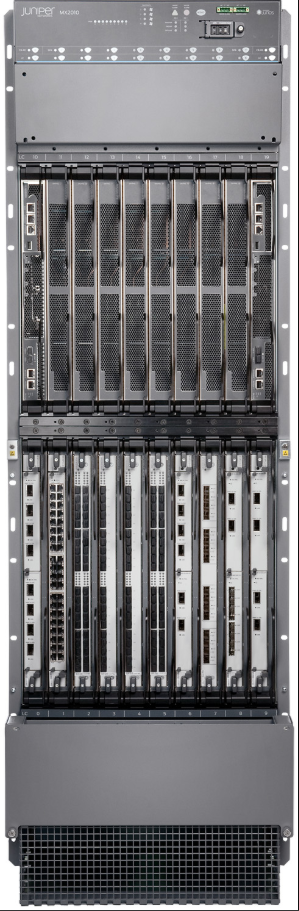 The Juniper QFX10008 is a modular spine switch designed for large-scale data center fabrics. It offers very high switching capacity and large port density for connecting many leaf switches.