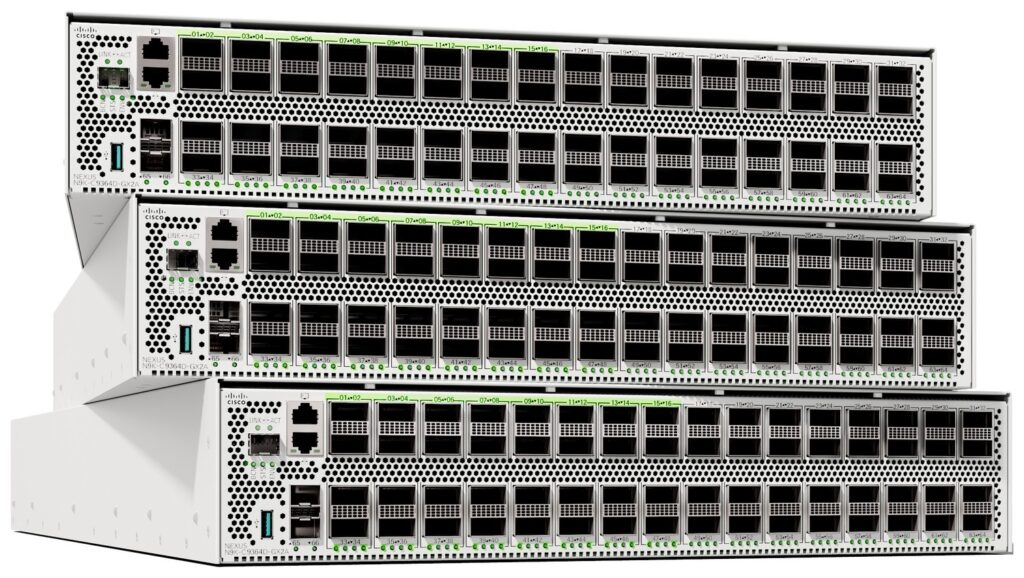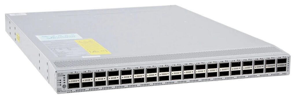 | Cisco Nexus 9332C | Fixed 32×100G spine switch used in spine-leaf fabric networks. |