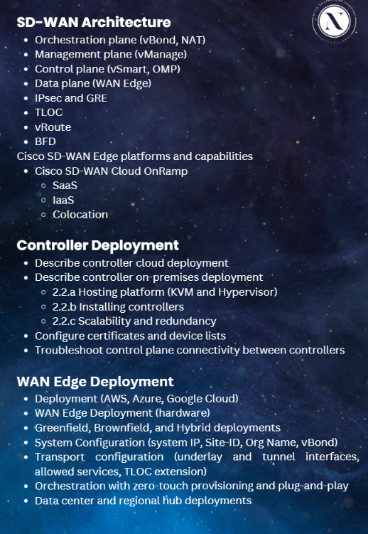 This exam covers broad enterprise networking technologies including: