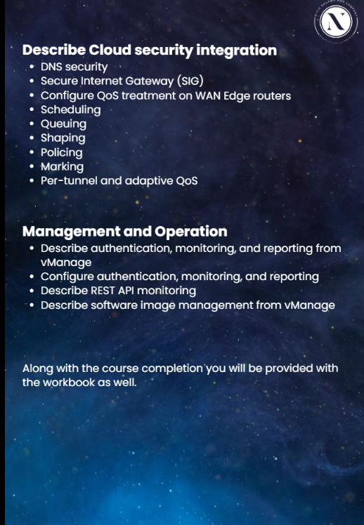 The final module explains how on-premise data centers integrate with cloud platforms such as Amazon Web Services, Microsoft Azure, and Google Cloud. Students learn hybrid cloud networking, workload migration, and cloud connectivity models.
