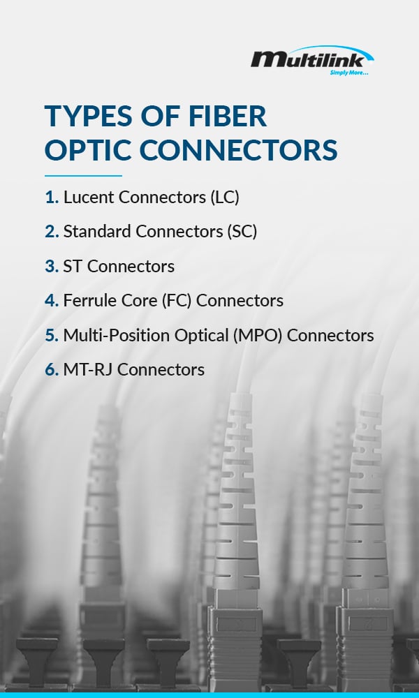 Fiber connectors differ based on what types of cables they connect. For example, single-mode fiber connectors and multimode fiber connectors each pair with the cable with the same mode compatibility.
