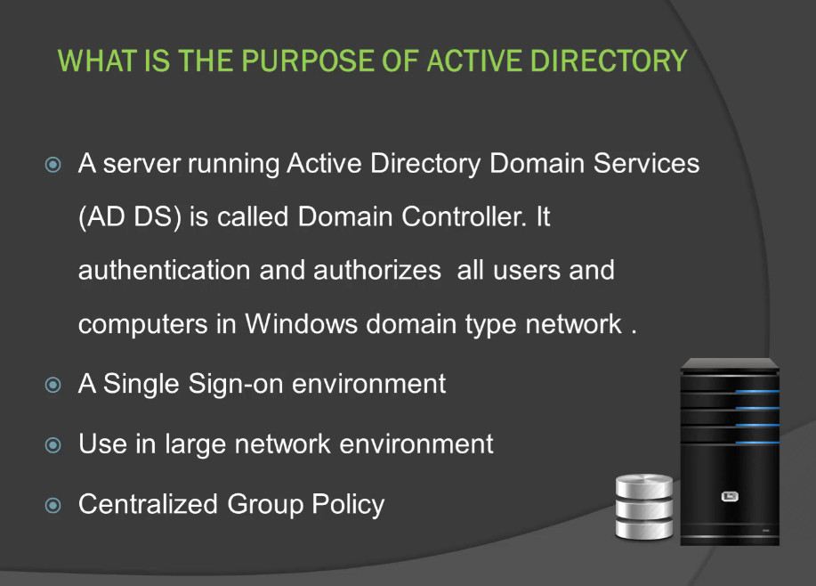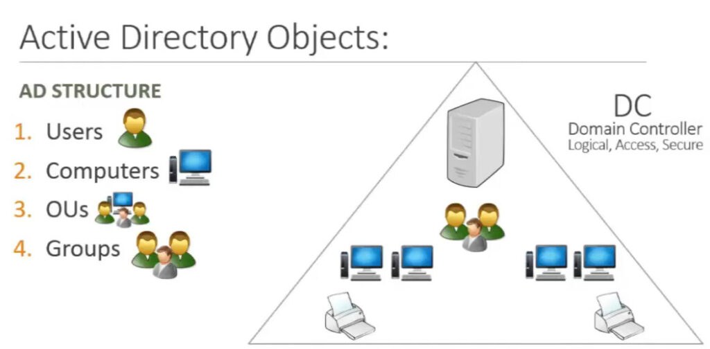 - User and group management: AD allows administrators to create, modify and delete users and groups. This helps organize and manage access rights and permissions for various users and groups within the organization.