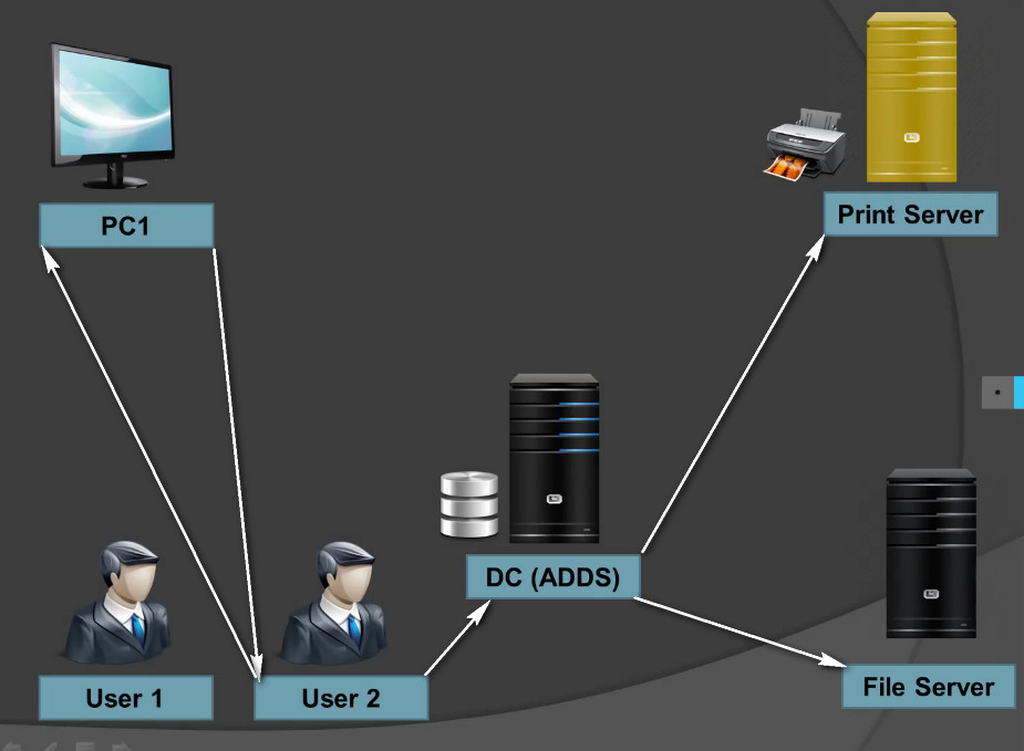 - Domain controllers: A domain controller is a server that hosts AD services and provides authentication and authorization of users within the network.