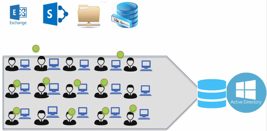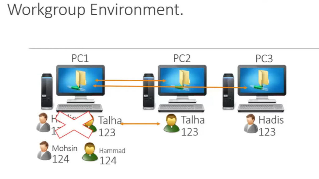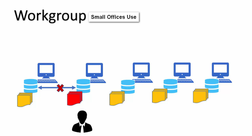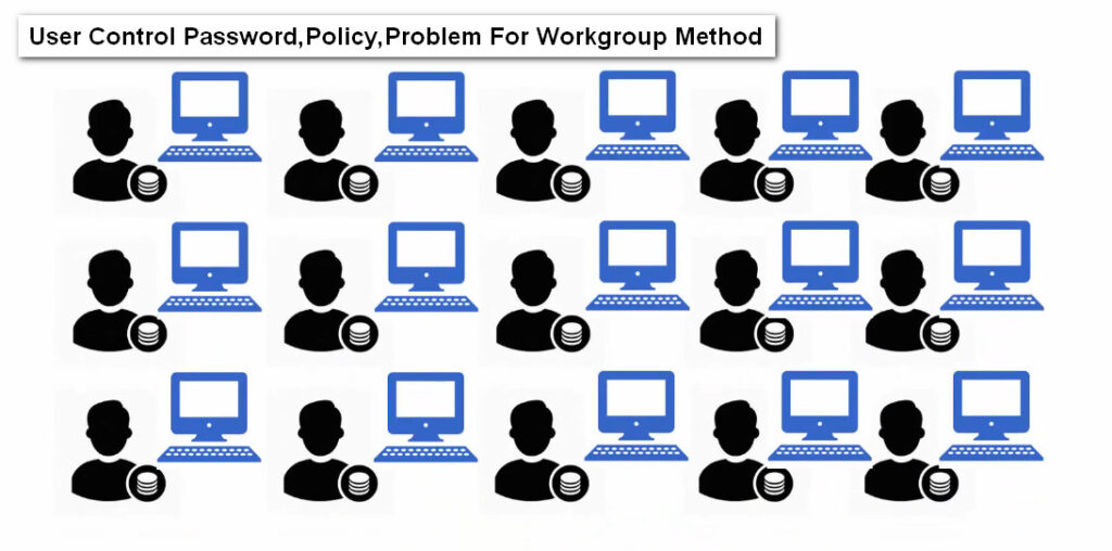 In a large organization (say 50–500+ computers), if you only use a Workgroup setup (no Domain Controller), many management and security problems occur.