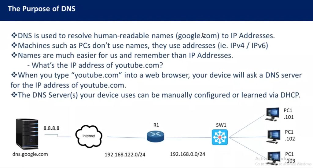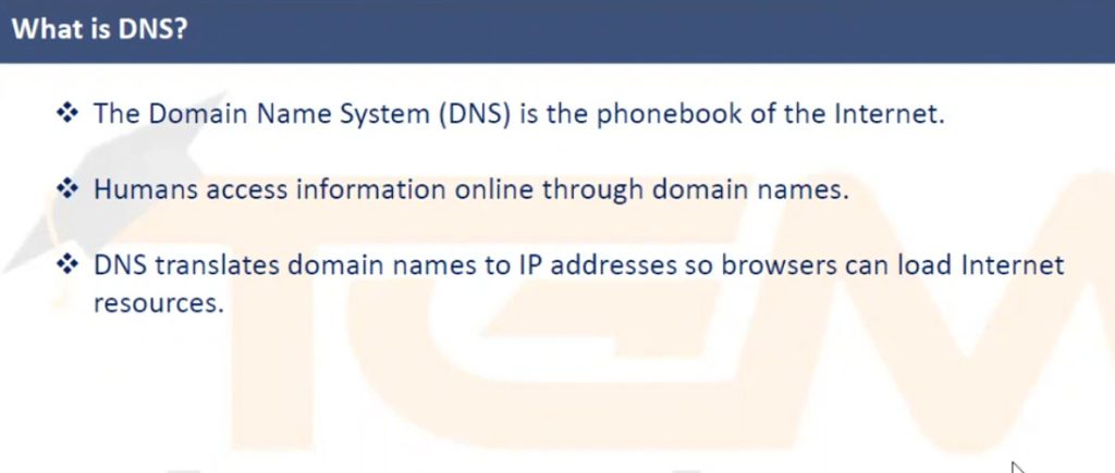 For example, when a user types www.example.com in a browser, DNS finds the server IP address where that website is hosted and sends the user to that server.