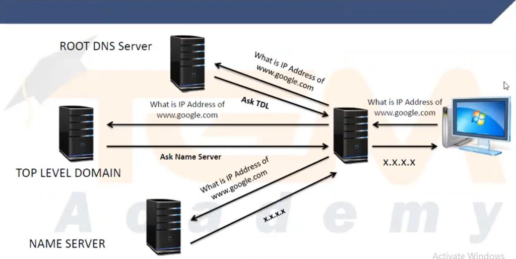 A Root DNS Server is the top-level server in the DNS hierarchy. It does not store the actual IP address of every domain. Instead, it directs DNS queries to the appropriate Top-Level Domain (TLD) server based on the domain extension such as .com, .org, or .net. Root servers play a critical role in guiding DNS queries to the correct part of the DNS system.