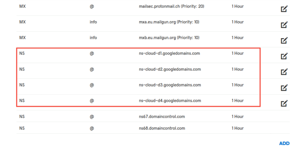 These servers manage and store DNS information for the domain.