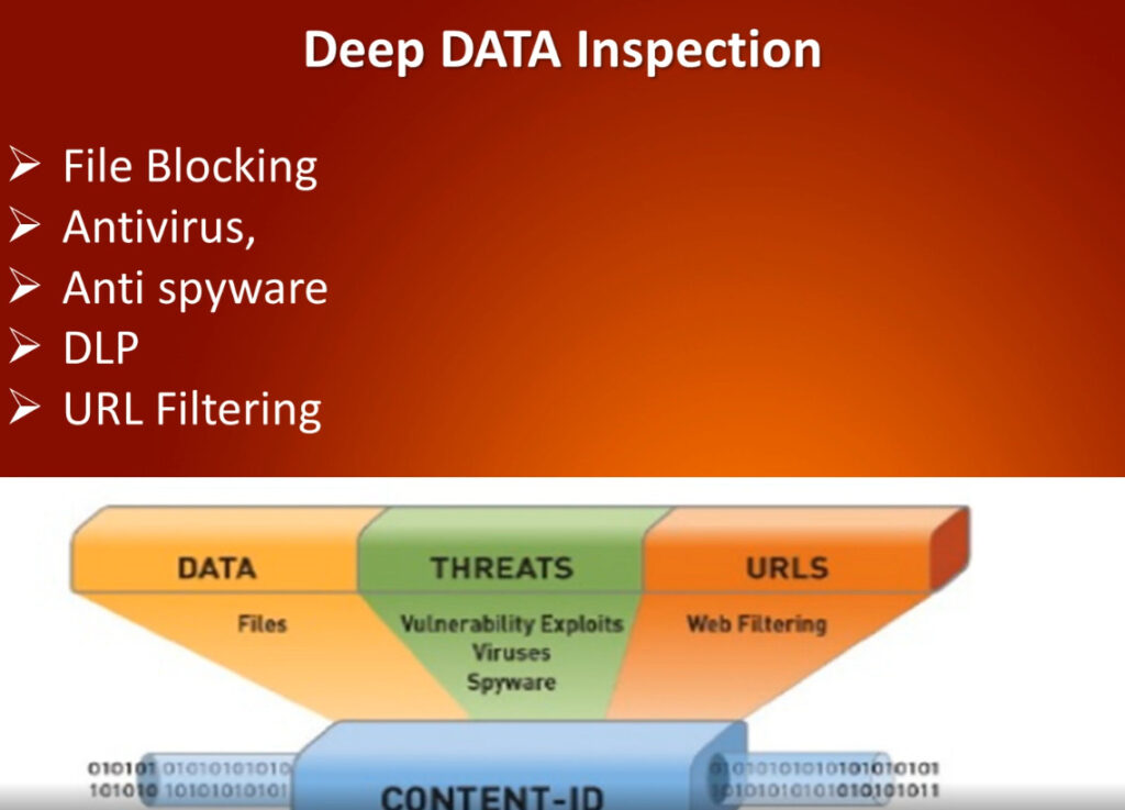 - Deep packet inspection — Network firewalls examine data within the four TCP/IP communication layers (from highest to lowest): application, transport, IP/network, and hardware/data link. Next gen firewalls can inspect traffic at higher order TCIP/IP communication layers, including the application layer. This provides next generation firewalls with application awareness, e.g., context about which application traffic is transiting to and from, and baselines of expected user and application behavior against which to compare transit patterns.