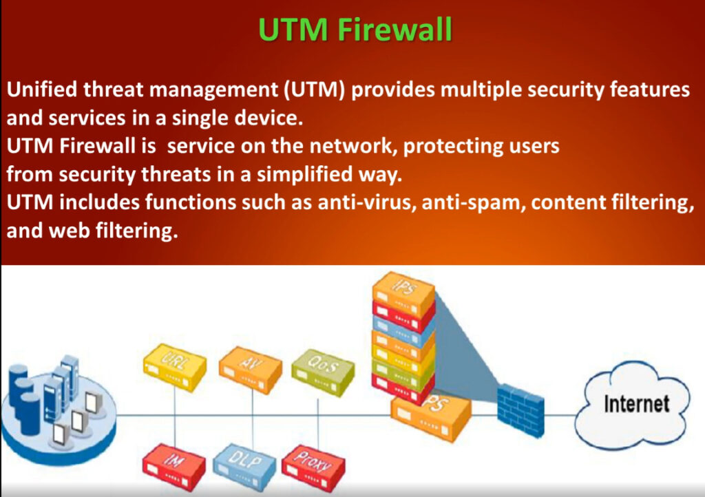 Unified threat management (UTM) comprises security services like malware (antivirus, phishing, trojans, spyware, etc.)detection and mitigation and web content filtering (restricting user access to specific kinds of content or websites). Next generation firewalls combine UTM services with firewall capabilities to deliver comprehensive protection via a single platform.