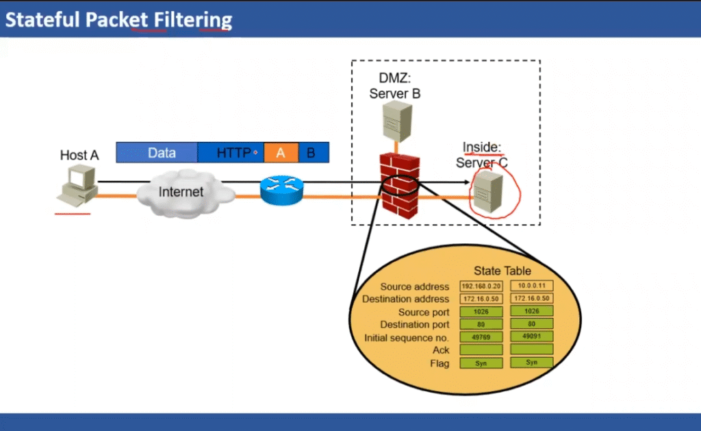 Stateful packet inspection analyzes the contents of a data packet and compares them to information about packets that have already traversed the firewall.