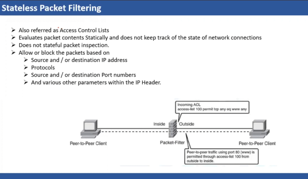 Inspection | Stateless | Stateful | Blocks traffic that deviates from expected norm compared to established connections |
