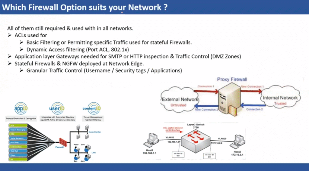 Firewall rules are precise directives that form a critical part of firewall configurations. They define the conditions under which traffic is permitted or blocked based on parameters such as source and destination IP addresses, ports, and communication protocols. In enterprise environments, these individual rules are nested together to form Access Control Lists (ACLs). When processing traffic, the firewall evaluates each packet against the ACL rules in sequential order. Once a packet matches a rule, the firewall enforces the corresponding action—such as allowing, denying, or rejecting the traffic—without further evaluation of subsequent rules. This structured and methodical approach ensures that network access is tightly controlled and consistent.