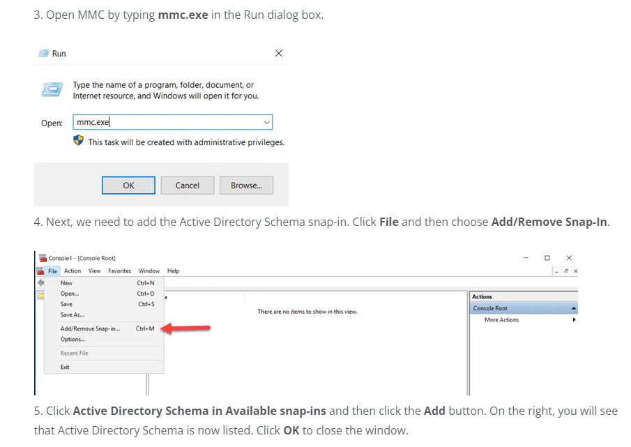 Type regsvr32 schmmgmt.dll and press Enter. You will receive a confirmation message that the command succeeded.