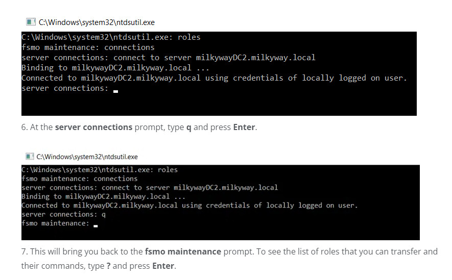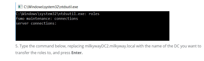 Transfer FSMO Roles using ntdsutil.exe Commnd Line