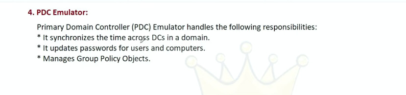 - Primary Domain Controller (PDC) Emulator (Domain-specific)