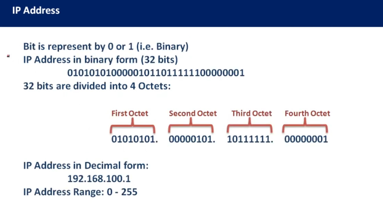 - It consists of 32 bits (4 bytes), which are divided into four octets, each ranging from 0 to 255.