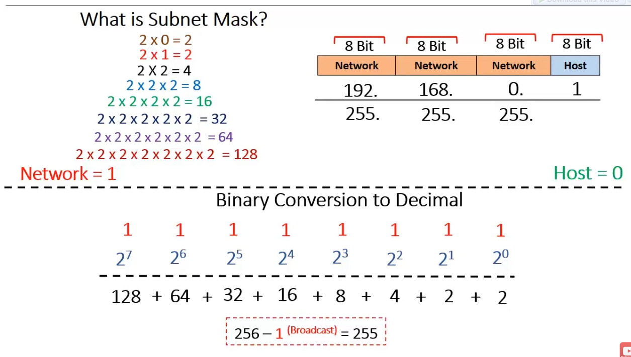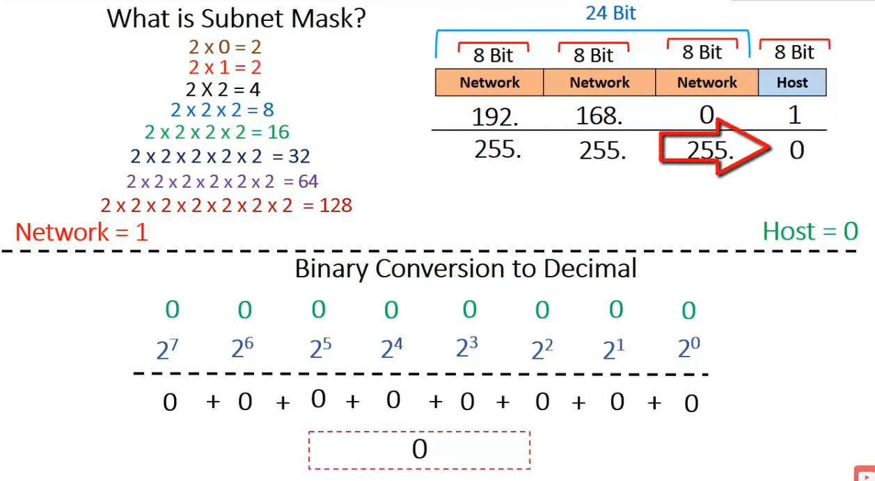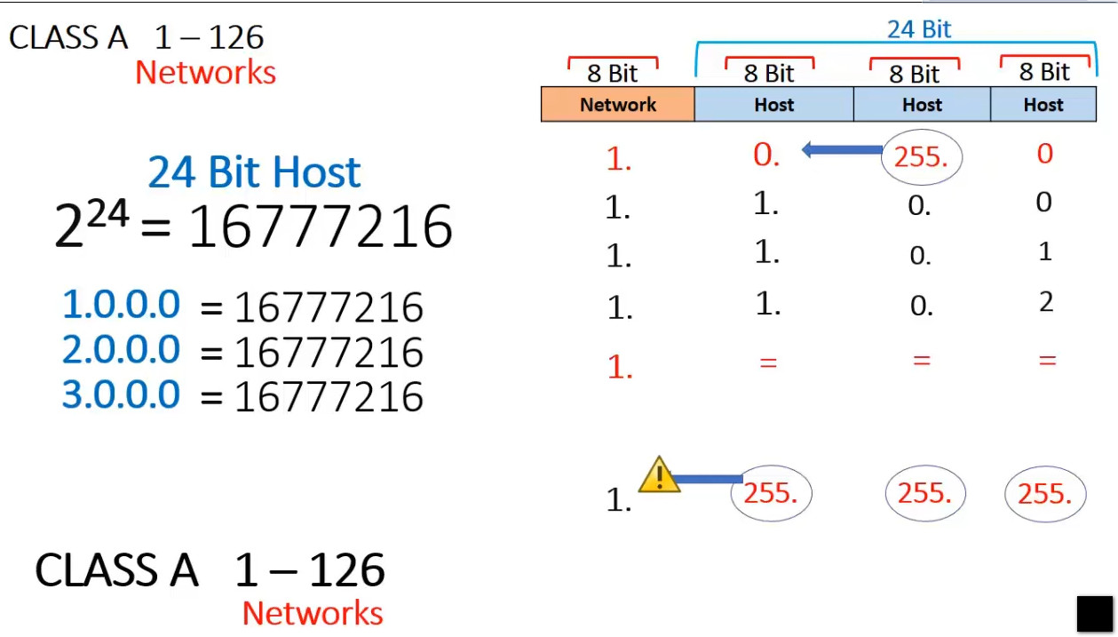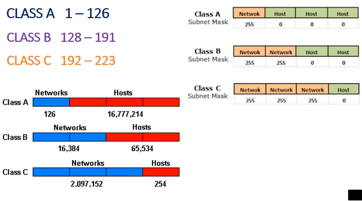 255.255.255.0(or/24prefix) - First Octet: Starts with