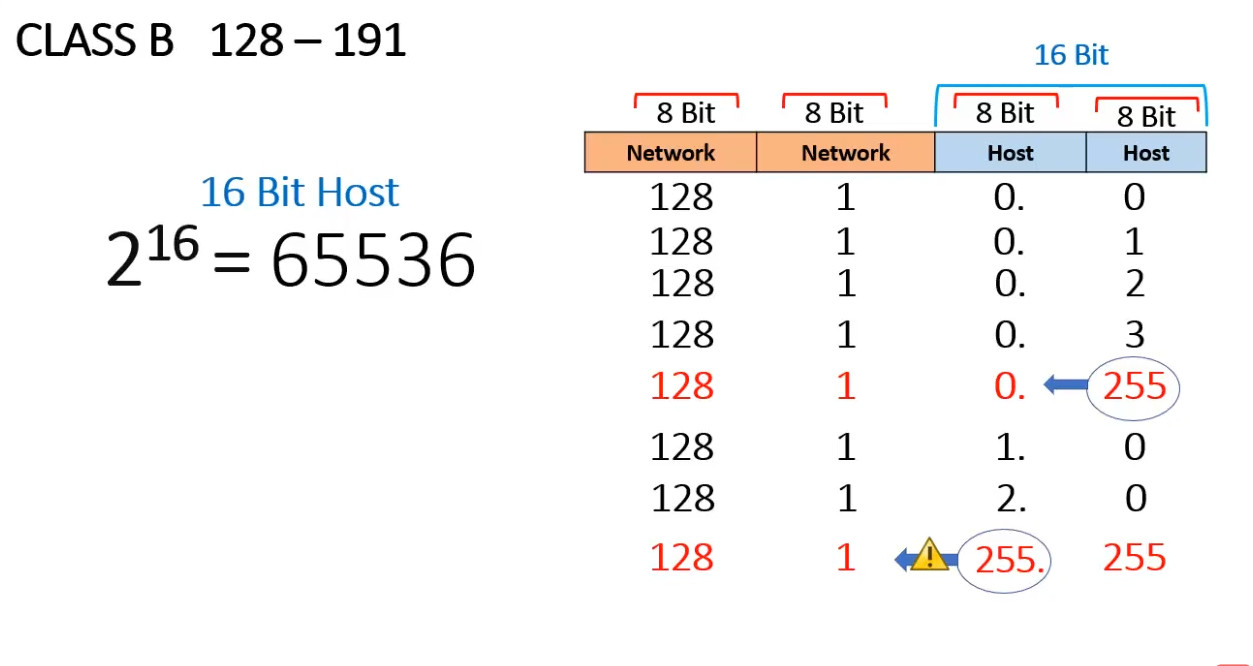 255.255.0.0(or/16prefix) - First Octet: Starts with