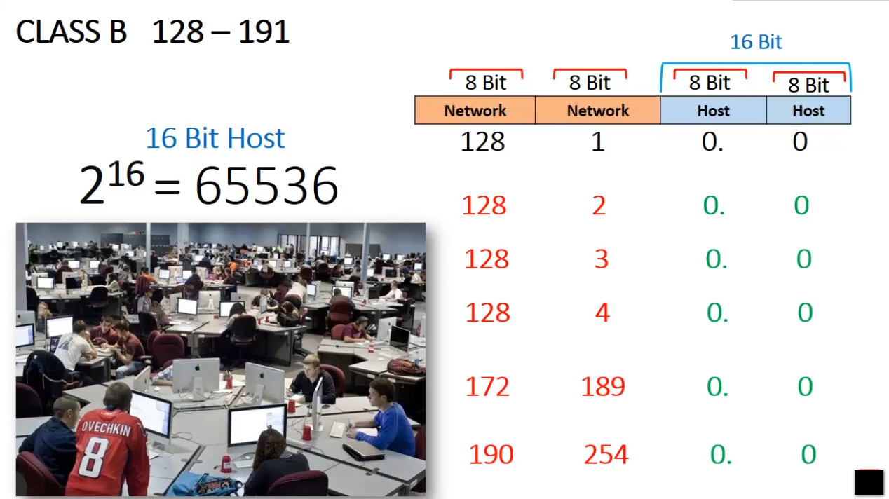128to191 - Purpose: Class B addresses are used for medium-sized networks (e.g., mid-sized businesses, large organizations).