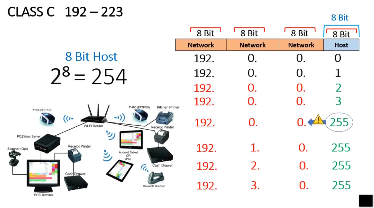 192to223 - Purpose: Class C addresses are used for smaller networks (e.g., home or small office networks).