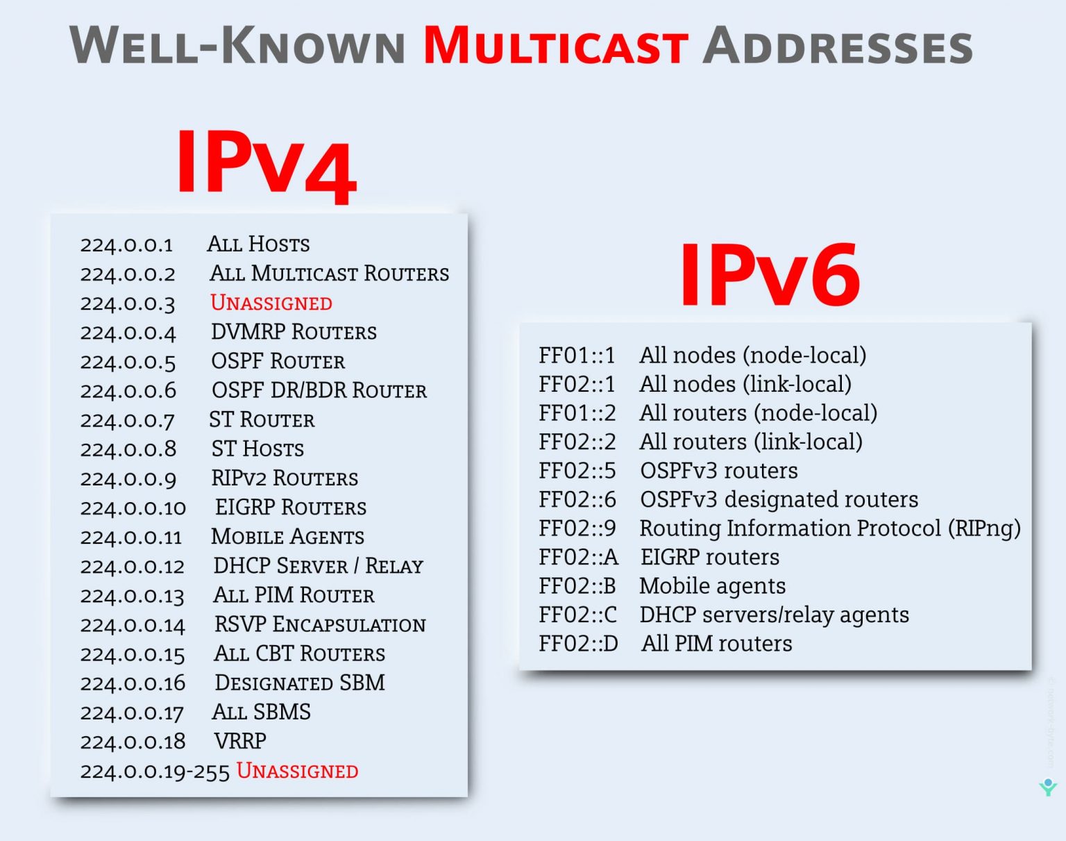 - Note: These are not assigned to individual hosts, so they aren’t used for standard device communication.
