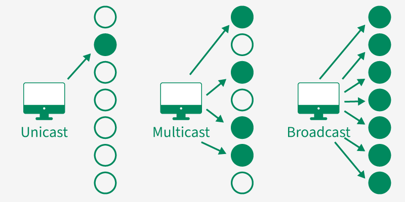 A Unicast IP address is used for one-to-one communication. In this type, data is sent from one source device to one specific destination device. This is the most common type of IP communication used on networks and the Internet.