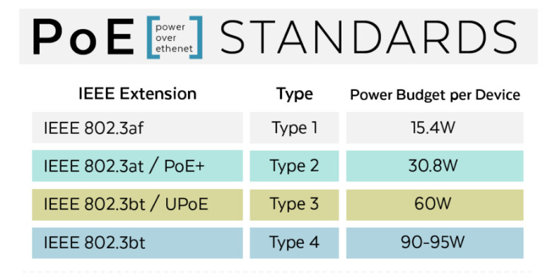 The most common types of PoE applications include:
